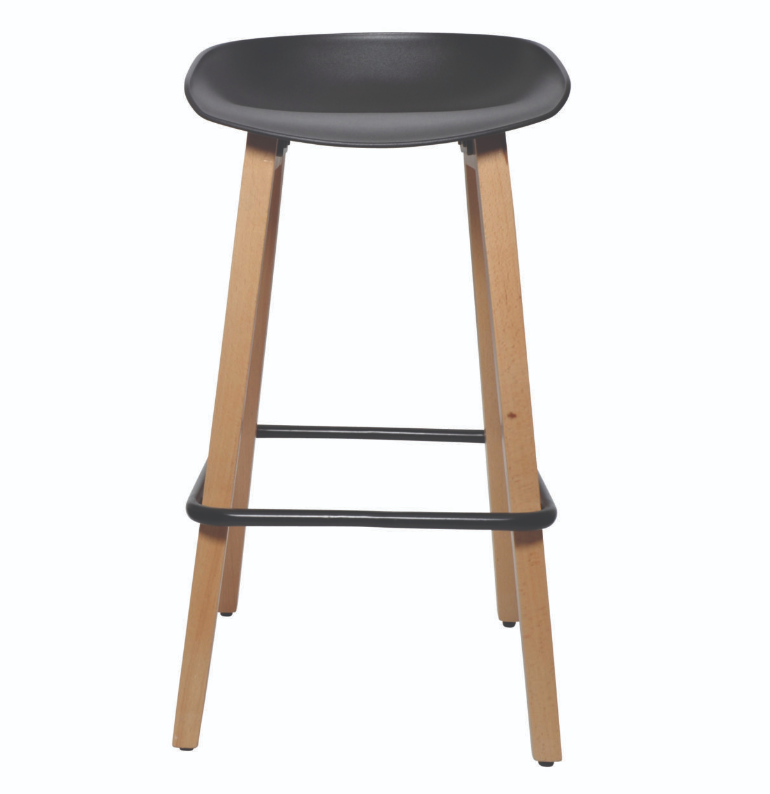 Casual but stylish, the Konfurb Pala Barstool features clean lines and a solid wood neutral frame. The contoured seat back provides support while the cross footrest allows you to rest your feet for a more comfortable sitting. Choose the polypropylene seat for durability and easy cleaning, or custom fabric upholstered to suit your home or workplace.